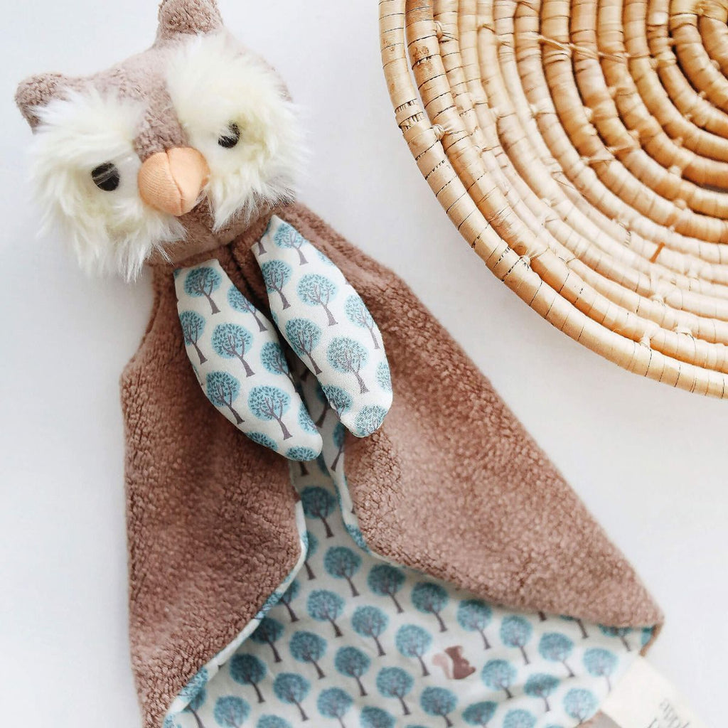 Cute and cuddly, these patterned blankies feature a mix of organic fabrics for a tactile delight.