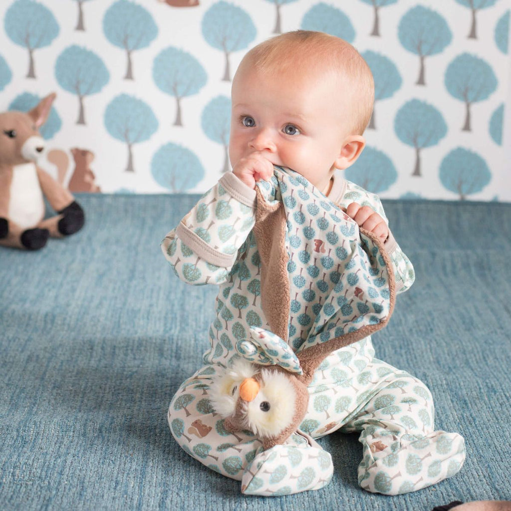 Cute and cuddly, these patterned blankies feature a mix of organic fabrics for a tactile delight. Pink Flower Print: 100% organic cottonEyes: recycled non-toxic plastic safety eyesFilling: natural corn fibre and 100%...