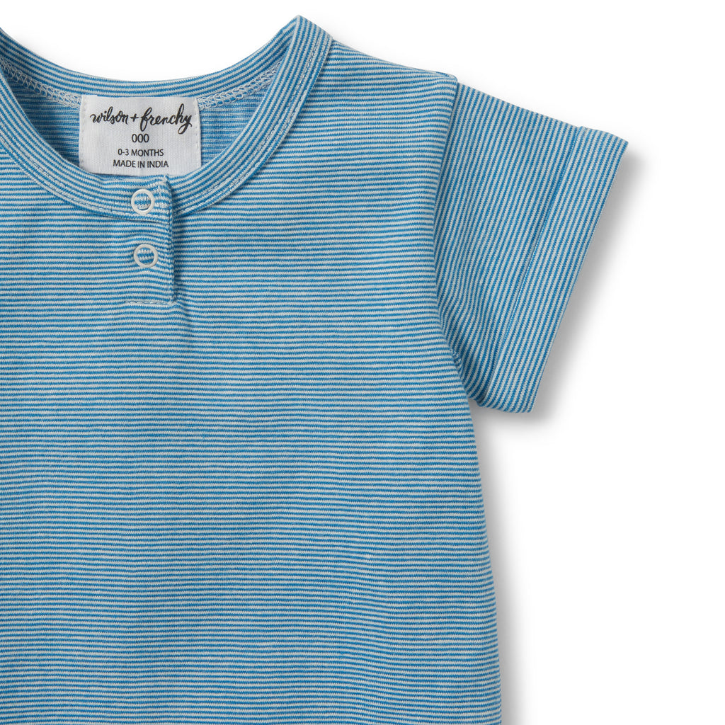 Wilson and Frenchy - Placket Tee - Mediterranean Blue Stripe