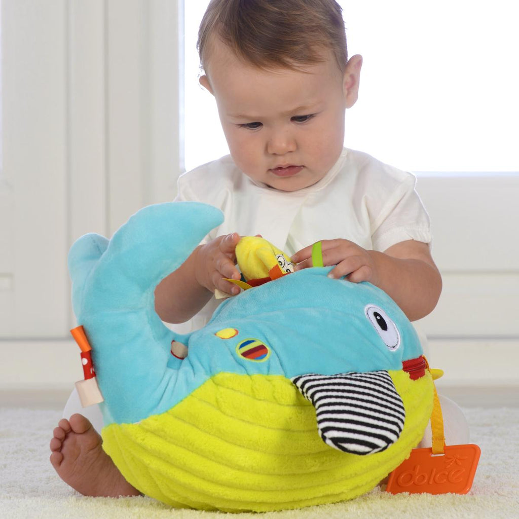 - The smaller toys that can be posted into the blow hole and removed by opening and closing the zipper on the mouth develop hand eye coordination.