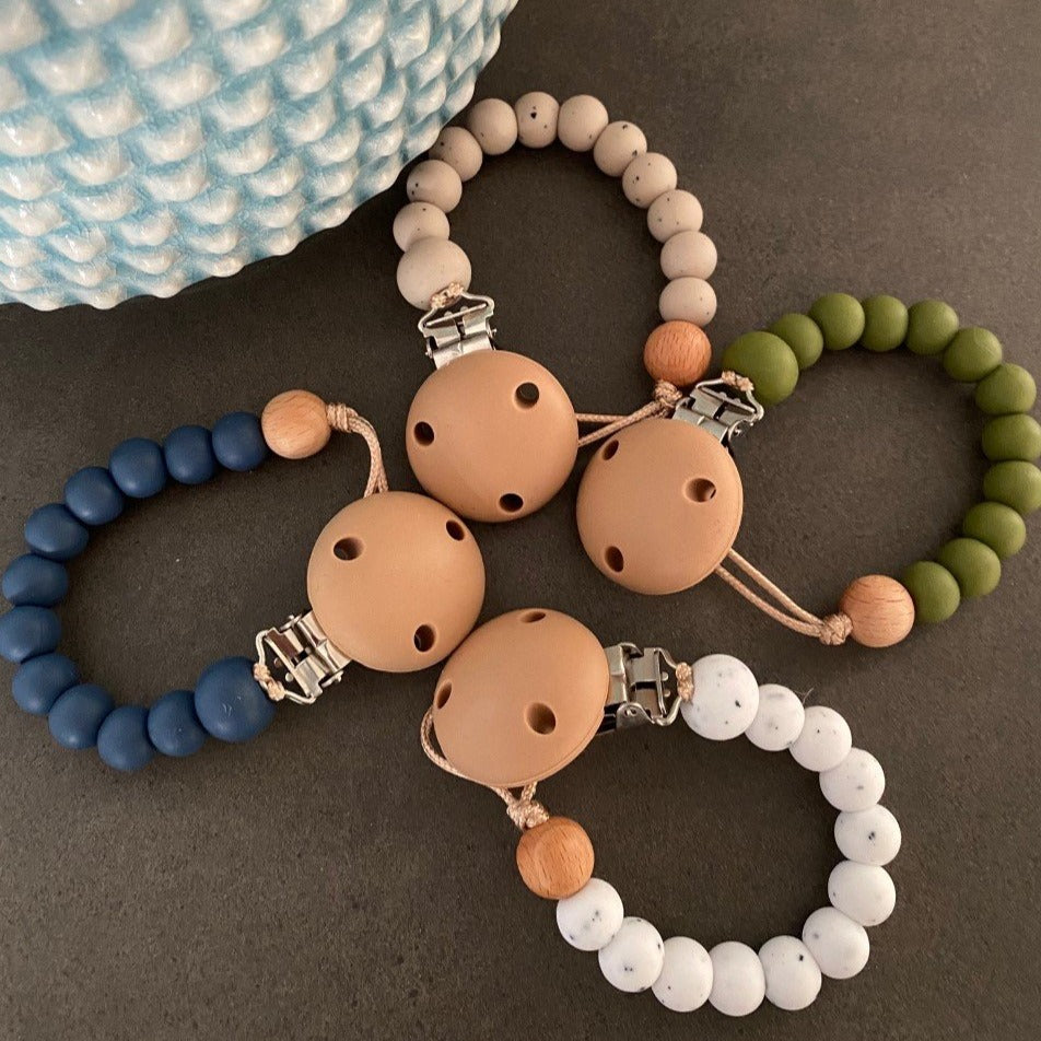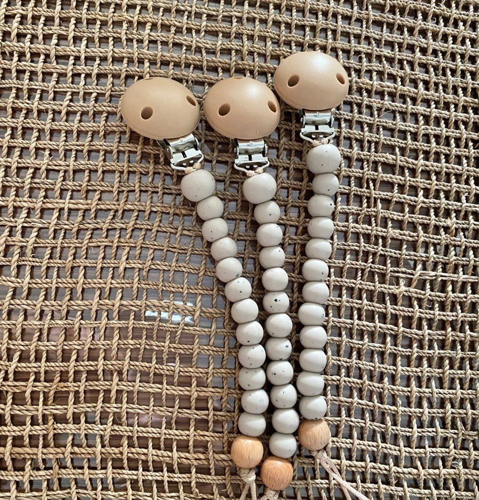 Handmade child-friendly pacifier chain (not a toy), made of wood with locally sourced water based paintsAll materials are saliva / sweat...