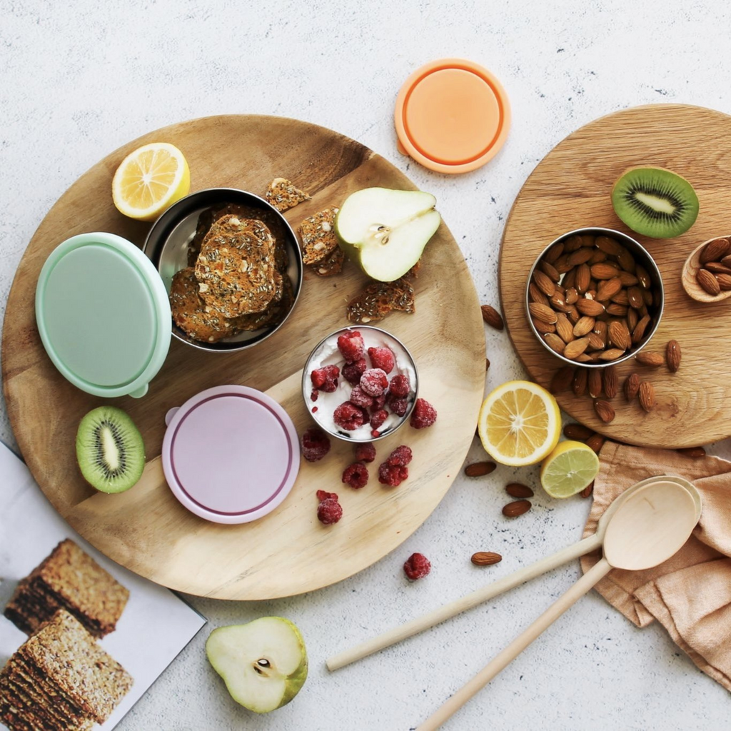 These oh-so-cute and practical mini stainless steel containers with leak-proof silicone lids are perfect for dips, dressings, sauces, yoghurt, sultanas, nuts, seeds and even travelling with your vitamins!