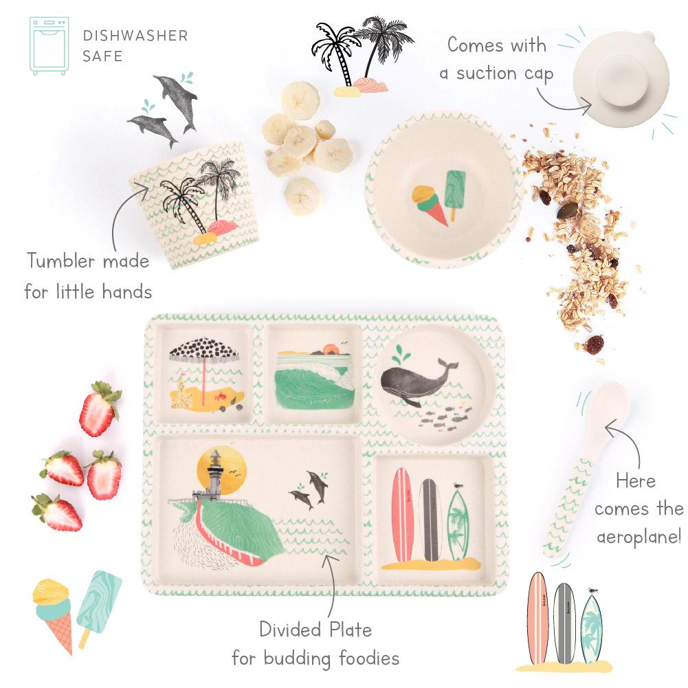 Please know that as much as we wish things could last forever our bamboo can be broken when dropped. It does not smash like ceramic, but occasionally when it hits a hard floor a chip or crack may occur. We recommend you treat it carefully and with love. It will then love you back and last gorgeously while your little one grows up.