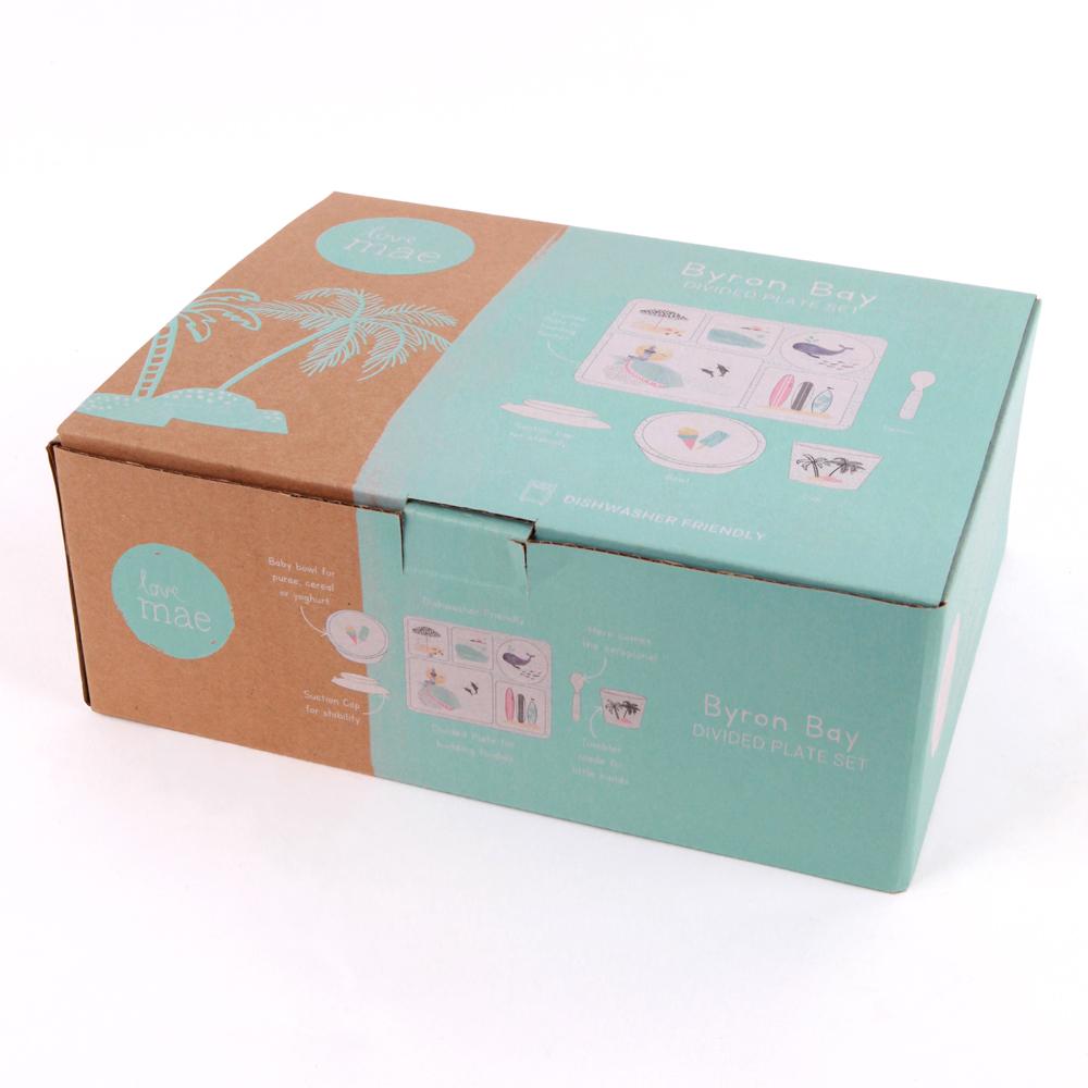 Beautifully boxed, in Love Mae packaging, bamboo 5pc divided plate set