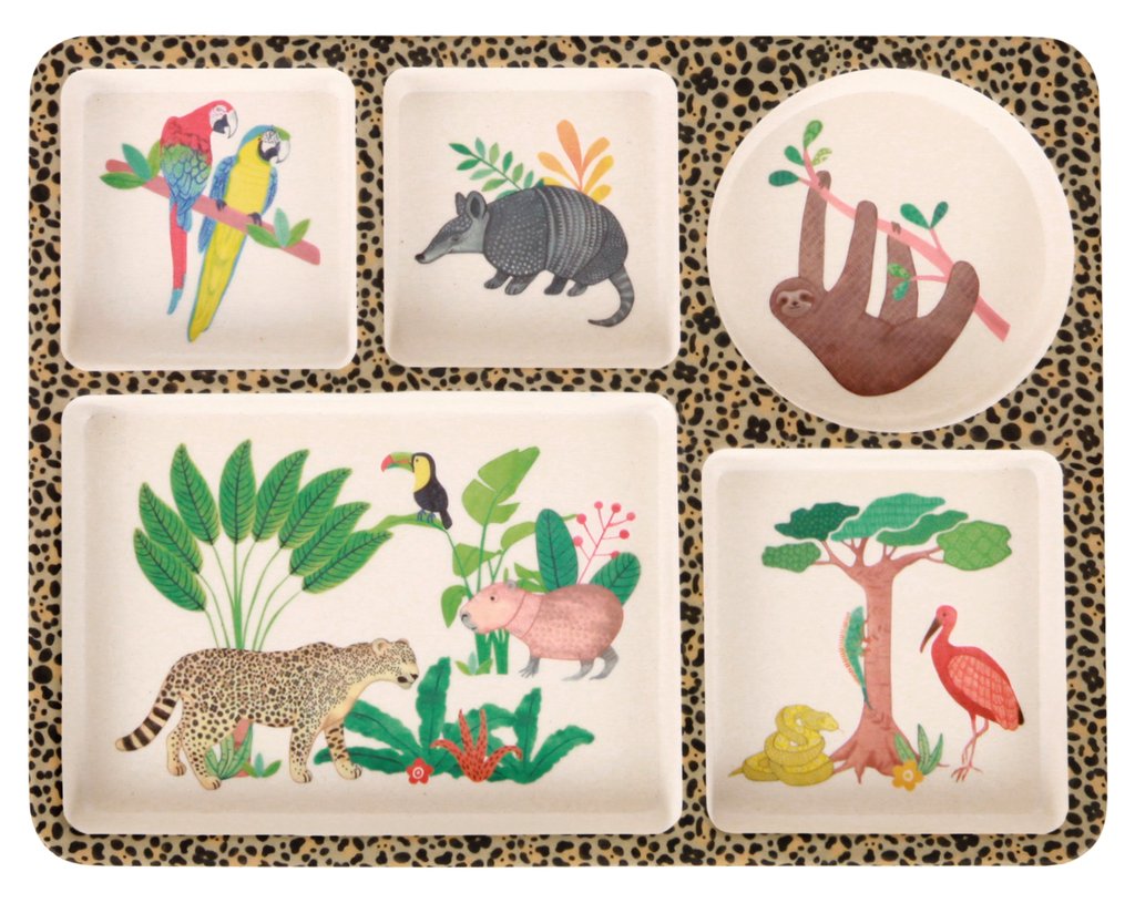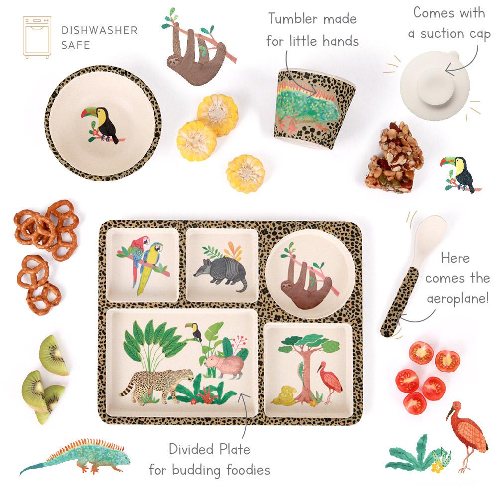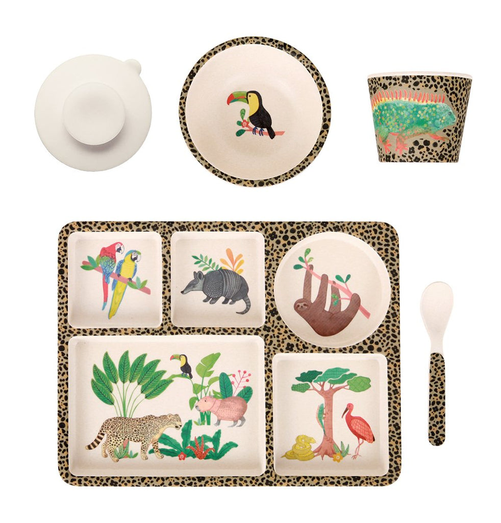This Love Mae dinner set is made up of 5 pieces of quality bamboo items that are perfect for you and your little love.