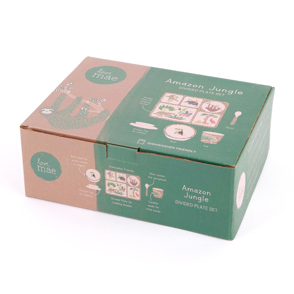 Beautifully boxed, in Love Mae packaging, bamboo 5pc divided plate set