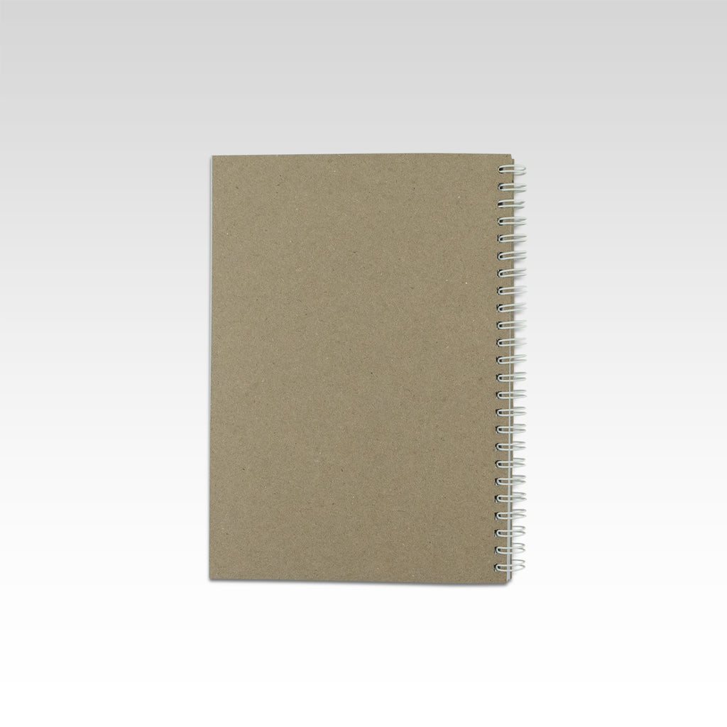 A5 size & wire bound, enviroboard cover with white premium weight cardstock pages on the inside.