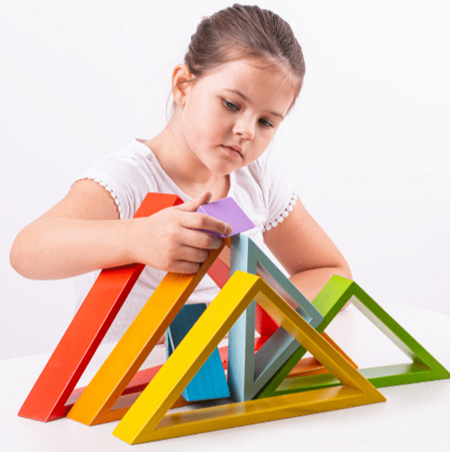 Wooden Stacking Triangles provides endless play possibilities within no guidelines or rules, creative youngsters can stack the triangle in any way they decide, discovering unique uses for each of the triangles. Little...Wooden Stacking Triangles provides endless play possibilities within no guidelines or rules, creative youngsters can stack the triangle in any way they decide, discovering unique uses for each of the triangles. Little hands can assemble a variety of shapes and objects while learning all about different sizes and colors.
