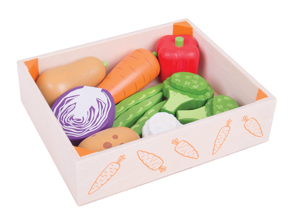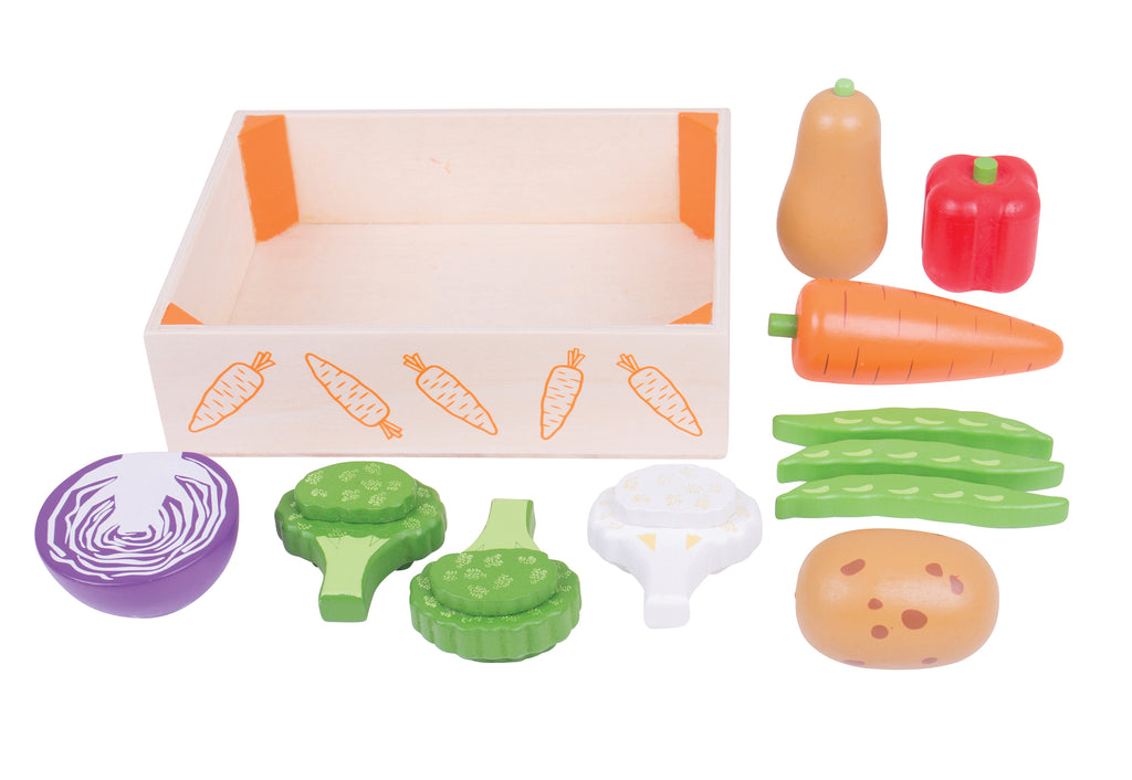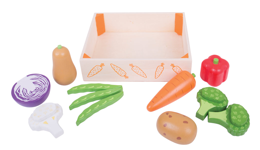 Fresh from the market, this wooden Vegetable Crate includes a selection of vegetables such as a carrot, broccoli, pepper, onion and more! A great addition to any budding chefs wooden...Fresh from the market, this wooden Vegetable Crate includes a selection of vegetables such as a carrot, broccoli, pepper, onion and more! A great addition to any budding chefs wooden play kitchen.