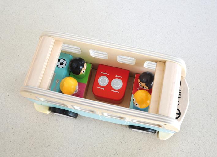 Indigo Jamm brings you a nostalgic retro camper van, complete with a charming wooden peg family and their faithful dog. Crafted from robust rubberwood with a beautifully finished paintwork, this camper van exudes timeless appeal. Its removable roof ensures effortless access to the interior, where the peg people can take their seats, matching each one with their corresponding colored seats.