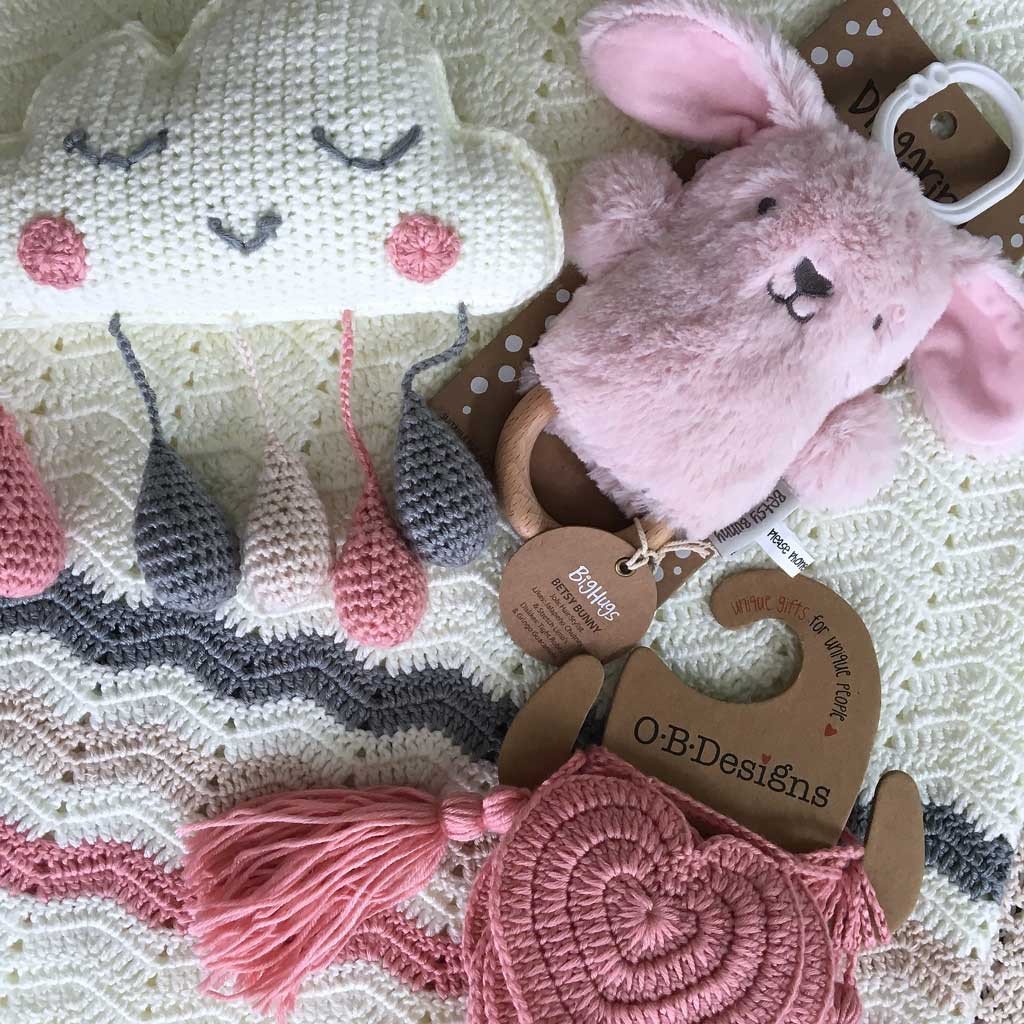 OB Designs - Dingaring Teething Rattle - Betsy Bunny Pink