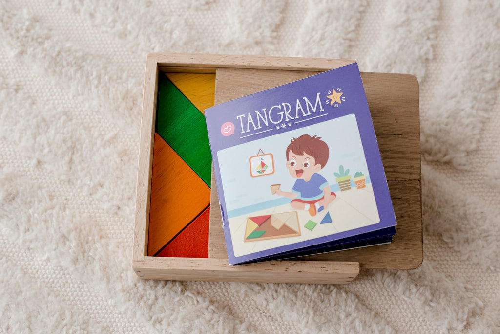 The Tangram is an old fashioned game and it’s famous for its creativity! This double tangram,with 1 colored set and one natural set will offer even more fun and open...The Tangram is an old fashioned game and it’s famous for its creativity! This double tangram,with 1 colored set and one natural set will offer even more fun and open endless building versions for young aged children. A booklet showing little ones how to create different pictures is included.