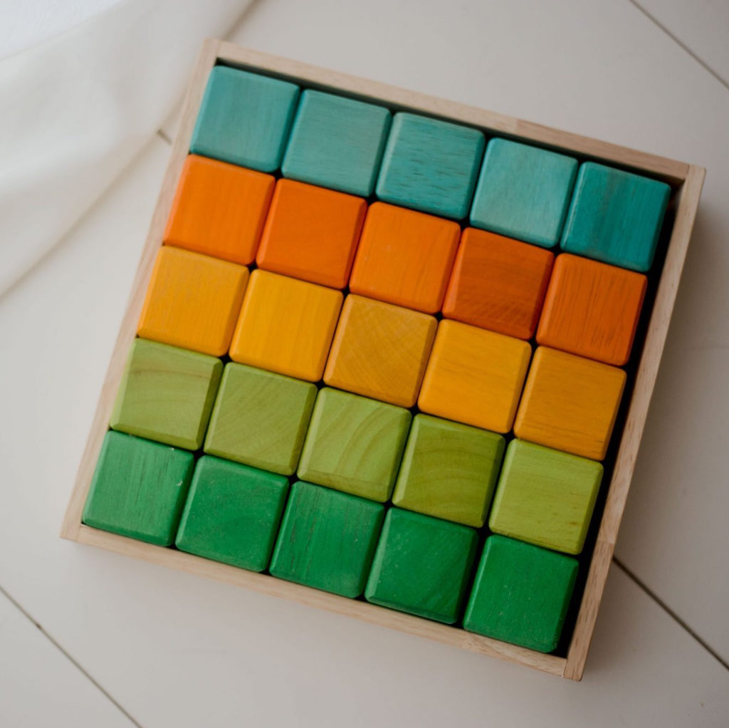 A simple yet creative first block set to spark imagination. This set of 25 cube blocks will have your little engineer exploring balance and gravity through play. Our handcrafted wooden...A simple yet creative first block set to spark imagination. This set of 25 cube blocks will have your little engineer exploring balance and gravity through play.