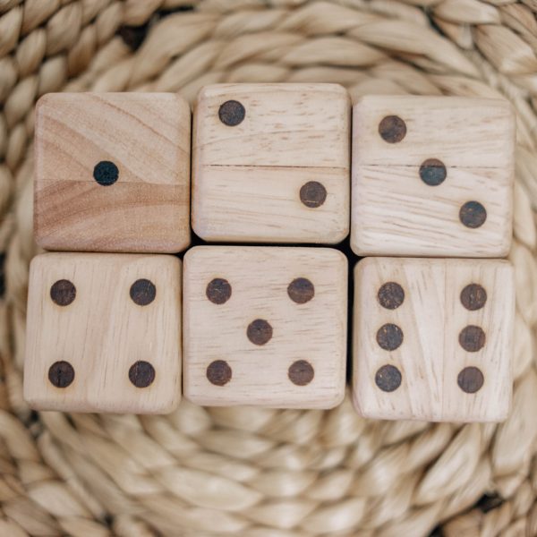 Dice can be a very versatile resource, perfect for mathematical activities from basic key math concepts (like counting, addition and subtraction) through to more advanced concepts (like probability and chance). This...Dice can be a very versatile resource, perfect for mathematical activities from basic key math concepts (like counting, addition and subtraction) through to more advanced concepts (like probability and chance). This listing includes a set of 6x6 sided wooden dice.