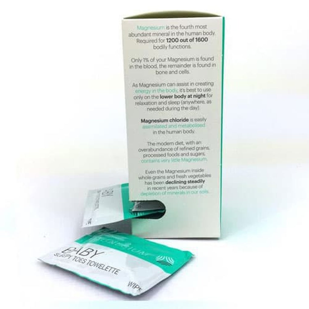 Amazing Oils Baby Magnesium Sleepy Toes Towelettes gently soothes your baby. These soft towelettes contain Magnesium Chloride which is praised for its ability to help improve restlessness, and help soothe...Amazing Oils Baby Magnesium Sleepy Toes Towelettes gently soothes your baby. These soft towelettes contain Magnesium Chloride which is praised for its ability to help improve restlessness, and help soothe muscles. When applied to the soles of the feet, Magnesium can be absorbed through the skin and, together with a little massage, can help babies drift off to sleep.