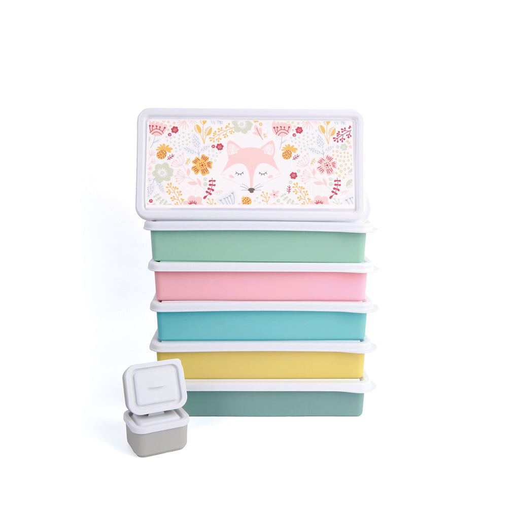 A picnic spread will always look prettier with a sweet Foxy Lulu lunch box in the mix. So long as that foxy red vixen stays nestled in her field of...A picnic spread will always look prettier with a sweet Foxy Lulu lunch box in the mix. So long as that foxy red vixen stays nestled in her field of Scandi-style flowers, snacks will be safe from any bushy-tailed raiders. Lucky our lunch box lids snap and seal so well!