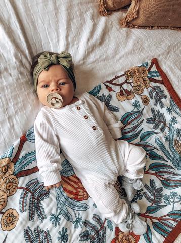 Pop Ya Tot - Wattle & Gum 100% Organic Cotton - Reversible Cot Quilt